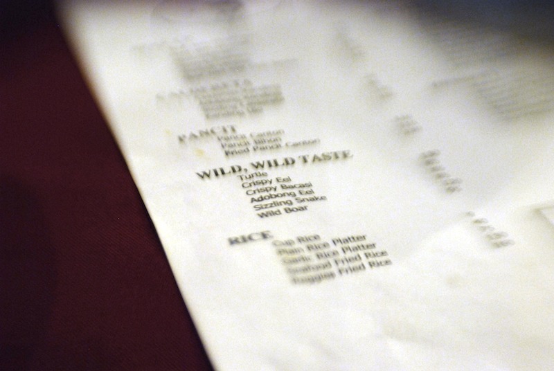 We worked hard today to meet our deadline so we could take a weekend trip to the island of Bantayan. After work, Reggie took Mike, Suzette and I to a nice restaurant with more exotic cuisine. The restaurant sadly was serving turtle which I think is horrible because there’s so few in the ocean already and they seem so innocent and gentle. Some of the other exotic menu items are moray eel, sizzling snake, and wild boar. Thankfully, they also served other more normal food that isn’t as detrimental to the environment.